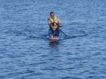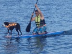 Dixie’s Dinghy turned out to be a bit too heavy on the back swim platform but some friends let us use their paddle boards and I was able to coax Dixie into going to shore twice. The picture is one of the few times she stood nicely on the front. Most of the time she was nervous moving around or trying to cuddle up by me which makes it much harder to paddle.